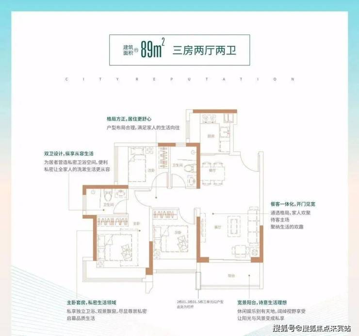 89㎡的3房2厅2卫,折后总价263-275万,单价约2.95-3.09万/㎡。
