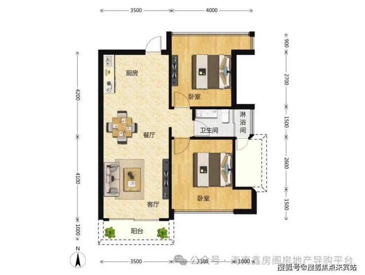 E户型三房两厅一卫: 94㎡送24㎡ 实得118㎡。