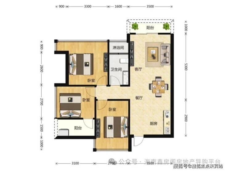 户型三房两厅两卫:116㎡送24㎡ 实得140㎡。