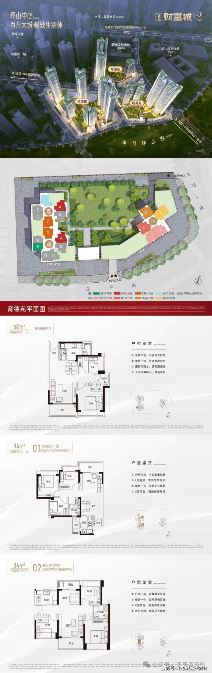 财富城2期所在的区位是整个坪山最核心的地段,汇聚了高铁+14/16号线双地铁+坪山实验学校+坪山中心公园+坪山天虹商场+坪山区政府+坪山体育中心+坪山图书馆,文艺馆等等,所有的市政配套基本都集中在这里,并且财富城2期也是该核心区域内唯一在售的新盘。