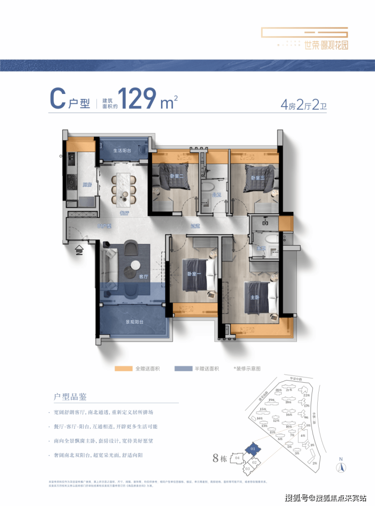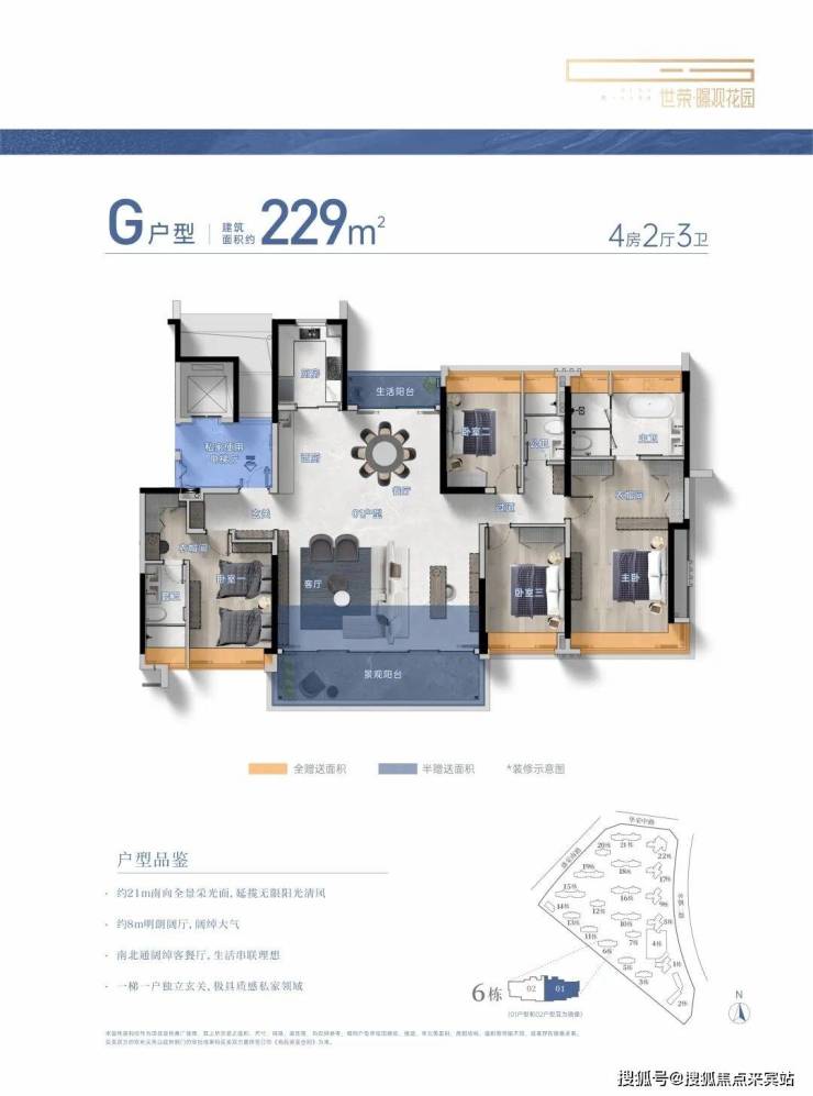 建筑面积约104-229㎡3-4房美学平层,着落其间