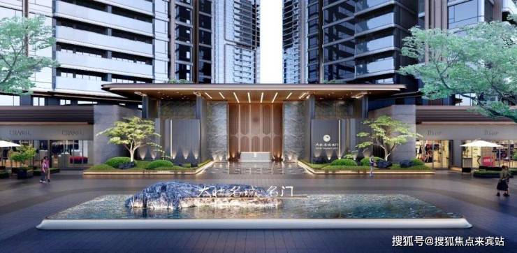 区别于一期的高大门楼、超大中国风景墙、层层递进的台阶,二期精心设计了三道归家入口,以及中轴迎宾景观,归家仪式感拉满:
