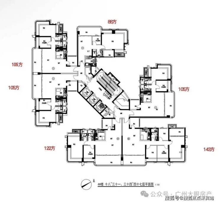 6个户型,朝向分别为:88平朝西北,2个105平朝西南,122平和143平朝东南,还有一个105平朝东北,不分户型大小,全都是3.05米层高