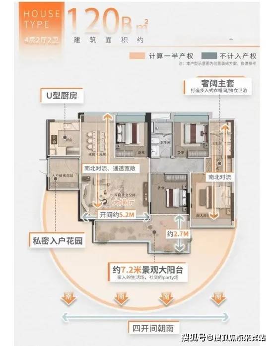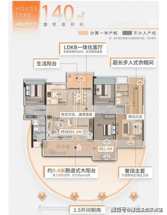 从户型感官上来看,这个户型的客厅和主人房的超大空间已经完全超越了部分市面上170㎡的户型。南北对流、通透宽敞通透,约9.4米跑道式大阳台,家庭烧烤聚餐、棋牌麻将搞起来,家里就可以完成的事,不必在外面人挤人。