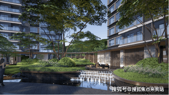 项目内将风雨连廊、高差近5米的半天云瀑,将庭院式的山水景观,都搬到了社区内。