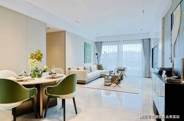 LDK一体化的设计,将餐厅的美味、客厅的美食和观景阳台的美景串联在一起