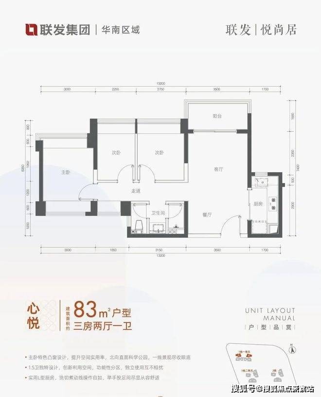 83㎡三房两厅一卫该户型四面朝向科学公园,视野景观优异,L型厨房灵活运用转角空间,操作便捷,提高烹饪效率 特色独有三分离卫生间设计,洗漱如厕淋浴互不干扰 所有卧室自带飘窗,加大空间利用率,主卧南北通透,视野采光极佳。深圳联发悦尚居开发商售楼处电话:400-166-9557售楼中心。