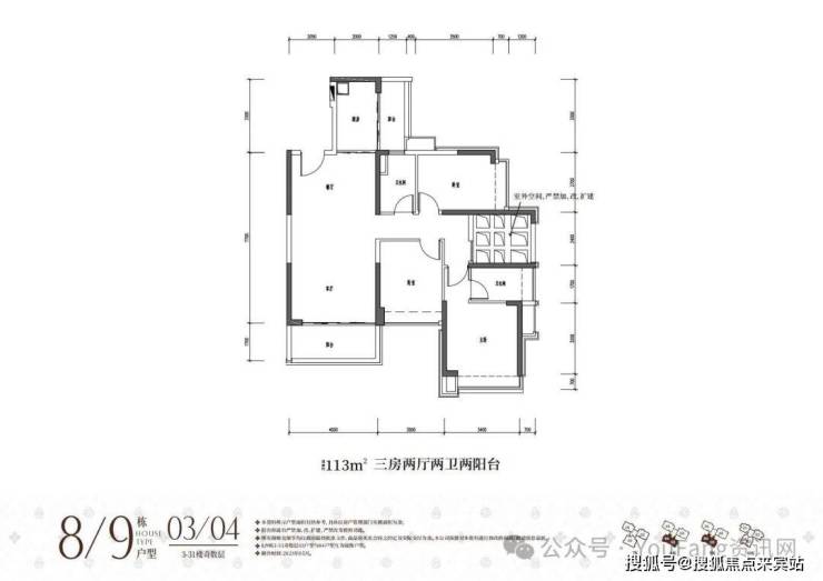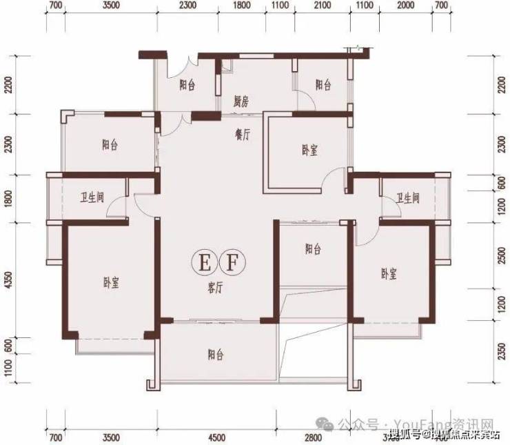 4栋EF户型奇数层128㎡ 三房两厅两卫五阳台