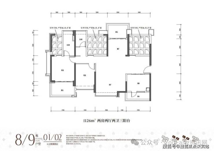 ①高阔奢享:建面约86-176㎡墅境宽宅,改善型大四房,全南向户型天然舒适;两梯三户低梯户比,多阳台露台设计,悦享阔绰居住空间;方正户型结构搭载更多半开放设计,高阔空间实用率与灵活性大幅提升。