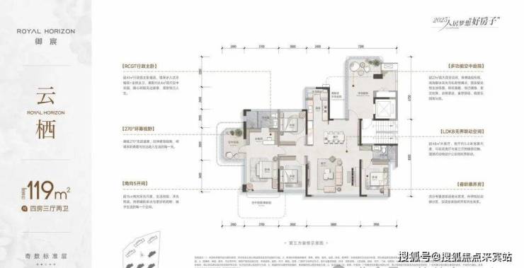 建面约119㎡的户型,实用率高达约145%,相当于拥有约172㎡的实用面积,比100%实用率的标准多出一套53㎡的小公寓!步入家门,首先映入眼帘的是超27㎡的多功能空中庭院。室内采用LDKG一体化设计,将厨房、餐厅、客厅、阳台巧妙融合,实现“零过道、零浪费”,轻松打造约48㎡的超奢巨幕厅。客厅南向全墙无遮挡,实现真正意义上的全面屏采光。主人独享约41㎡的酒店行政级主卧套房,内设独立卫浴与步入式衣帽间。此外,还有约8.4㎡的阔绰空中花园,挑高达约6.3米,尽显空间奢华。