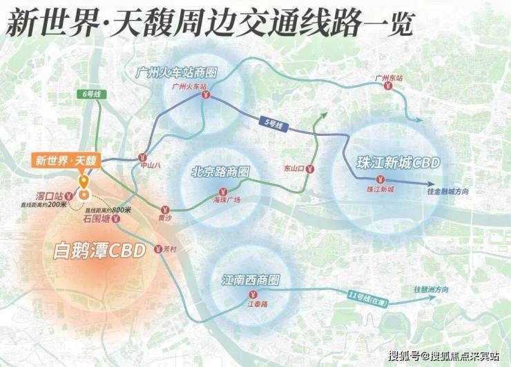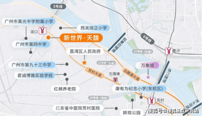 项目位于滘口板块,临近白鹅潭CBD,荔湾区目前在建的华润万象城商业,滨水街区太古里、太古汇,三馆合一都在附近,旁边就是5号线的首发站,去往珠江新城、金融城等地都无需换乘,相对来说这一片居住设施还是比较成熟的,还是豪华交标!