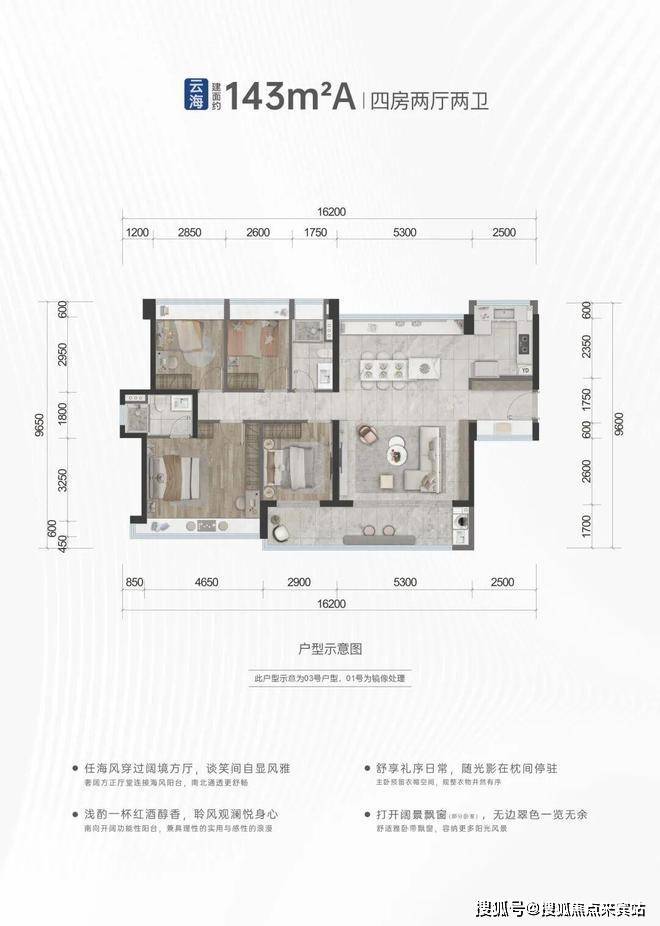 项目建面约24万㎡,规划了建面约10万㎡万象系商业,推出建面约125-143㎡润系3.0迭新之作,堪称滨海湾新区的海居封面范本。