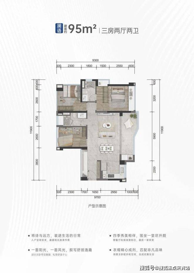 滨海润府,沿脉润府基因,将海浪转译成设计语言,精筑具有滨海特色品质外立面;打造风情泳池会客厅及定制休闲花园,营造自然微度假景观,感受归家的全新居住之旅;精筑建面约95-143m²瞰景海居,为焕新新区品质人居而来。