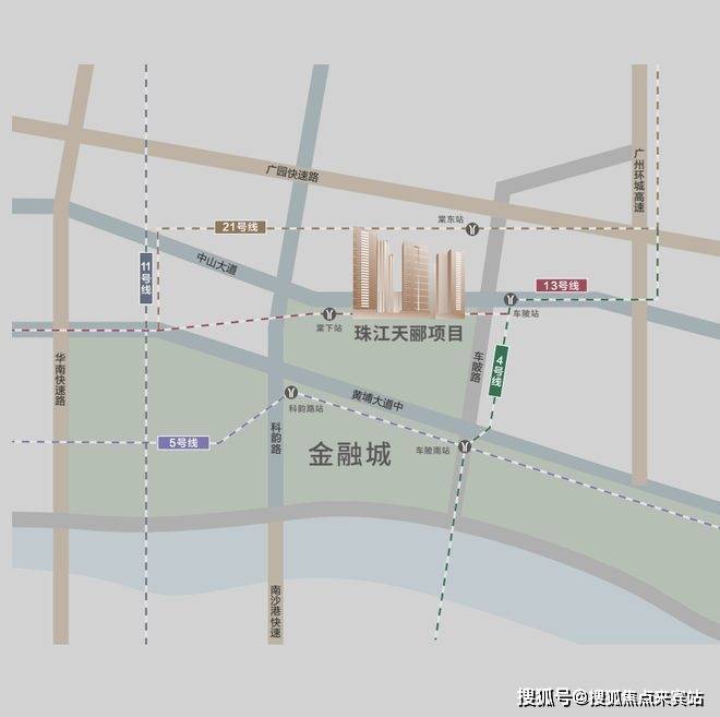项目私家连廊直通地铁13号线二期棠下站,10分钟抵达金融城交通枢纽,并以3+4+5超级交通枢纽,构建1小时湾区资本圈!