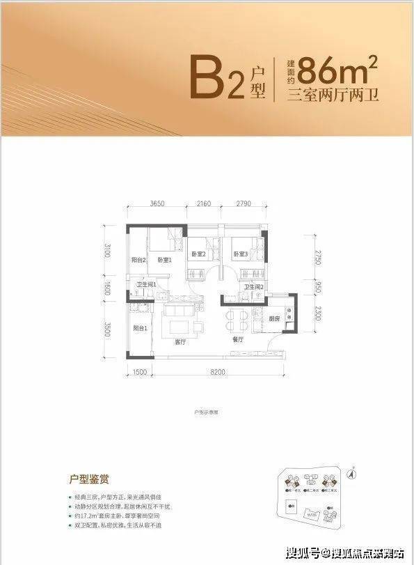 86㎡户型:3房2厅2卫