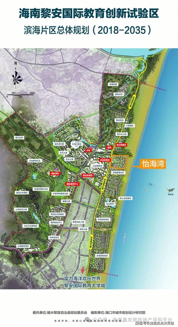 根据黎安国际教育创新试验区[滨海片区总体规划2018-2035],项目周边将打造集医疗、购物、旅游、度假、教育为一体的全面大配套,涵盖名品免税店、风情街、希尔顿酒店、中小学、医院、公园、富力海洋主题欢乐世界等。