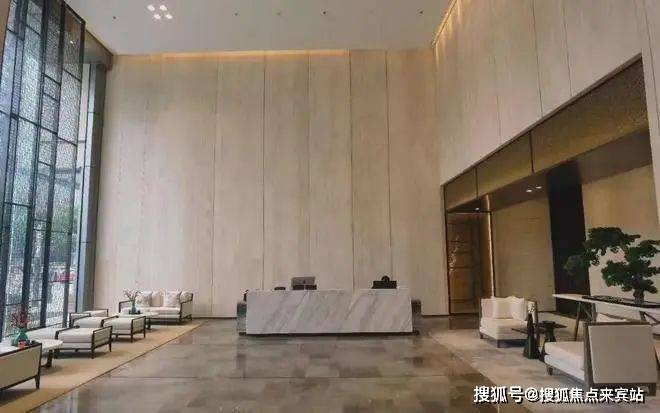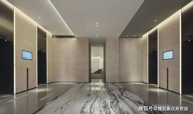 【气度】9.7米层高,程绍大师定制级艺术大堂;石材、黑钛、灯光的合理结合,典雅大气的大师定制级电梯厅及电梯轿厢;公区的每一处均甄选进口用材,彰显礼遇气度及企业恢宏形象。