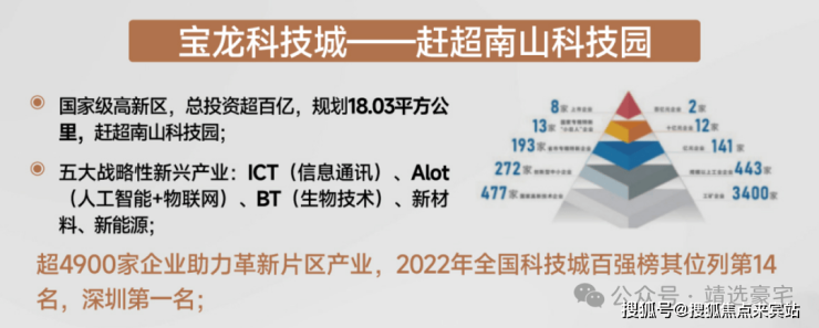 2022年宝龙科技城位列全国科技城百强榜第14名,深圳第一名,2022年宝龙街道规上工业增加值增速居全区第一,规上工业总产值全区第二。
