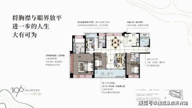 约99㎡3+1房2卫,户型升级,灵动入户空间,南向约6米阳台,尽揽自然景观,主卧套房,私密生活。