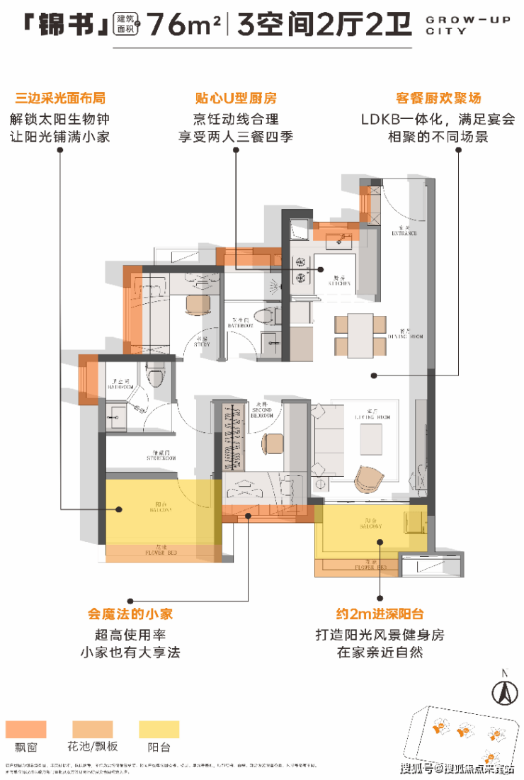 76㎡丨年轻人主城首选 南向三空间带主卫