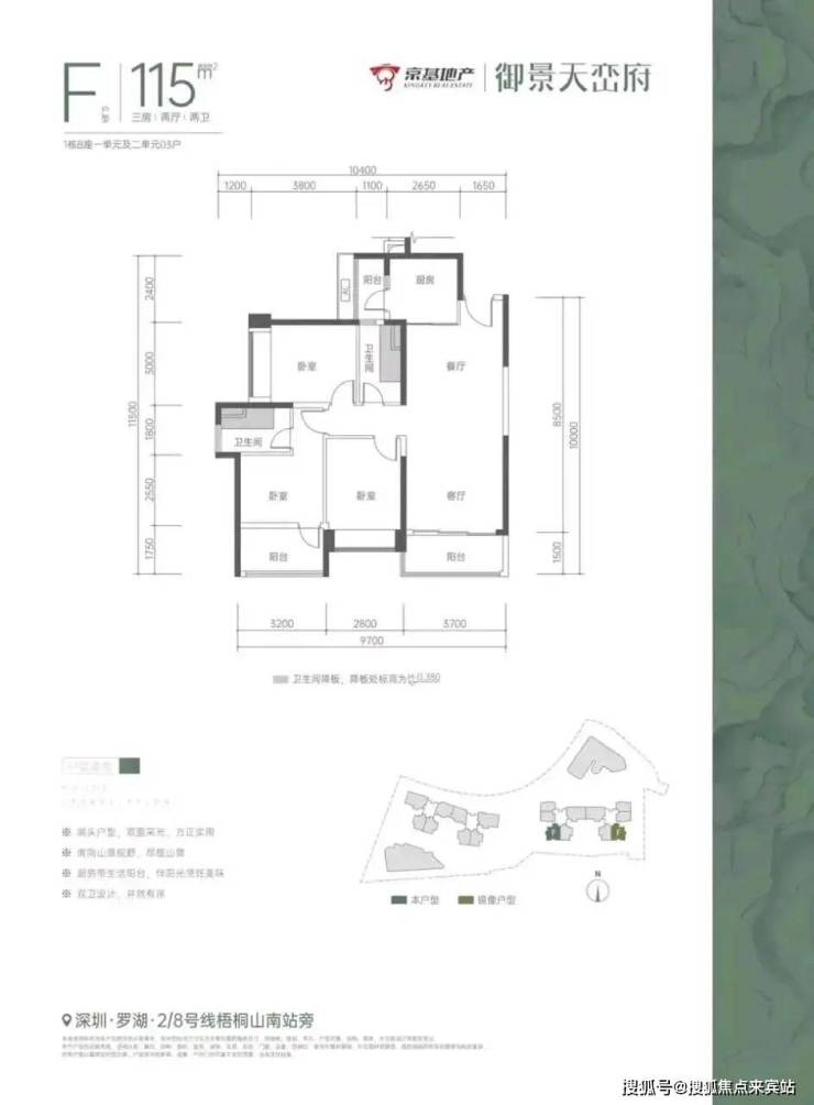 京基·御景天峦府,位于罗湖莲塘街道长岭中心路与罗沙路交汇处南侧,占据城市稀缺地块,坐拥得天独厚的自然景观与便捷的交通网络。项目北望梧桐山麓,山色葱茏,南瞰香港红花岭,视野开阔,尽享山海之间的壮丽景色。周边一寺两湖三公园环伺,为居住者提供了一个亲近自然的生活环境,快速通达东部华侨城、大小梅沙等旅游胜地,让生活与休闲无缝对接。