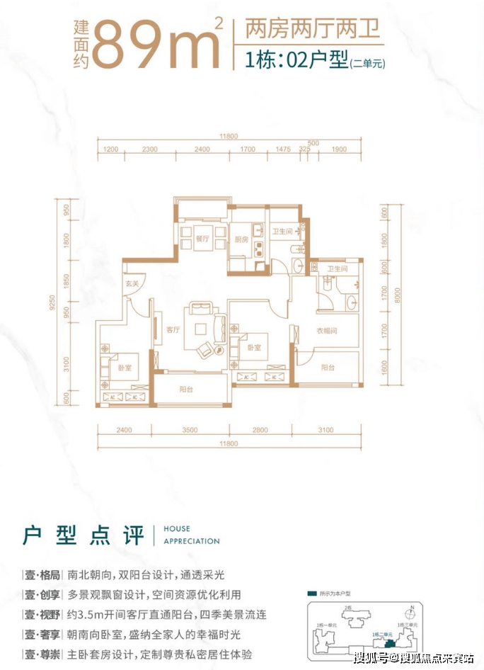 面积:80-89㎡3房2卫,112-118㎡4房2卫