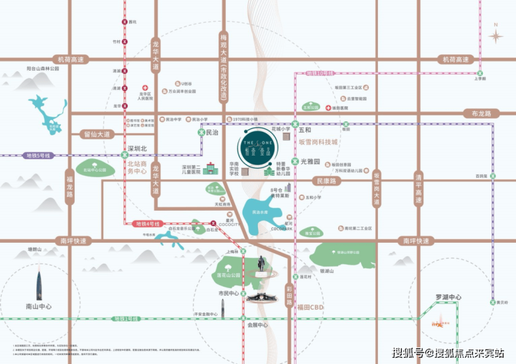 项目位于深圳中轴北段,地处深圳北站商务中心、坂雪岗科技城、福田CBD三大中心交汇处,教育、文化、生态、商业、娱乐休闲等多元价值荟萃,远见美好未来。