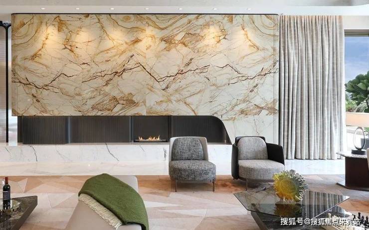 山石般沉实稳重,环绕青葱绿植,品味岁月悠长。青灰色高雅云石以独特工艺匠心雕琢,配以灵动线条巧妙铺陈,动静相得如白云出岫。