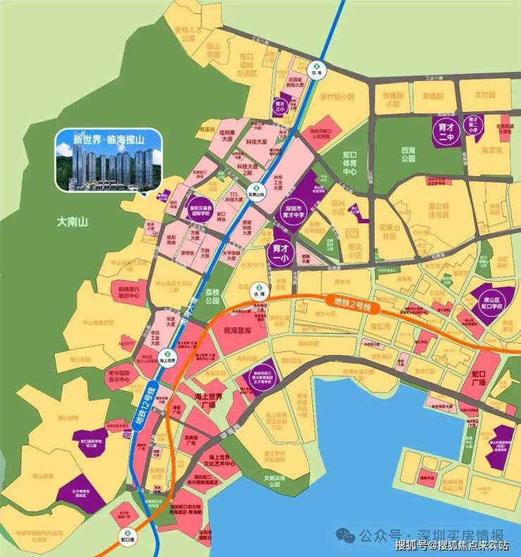 学校配套:新世界临海揽山幼儿园、育才一小、育才二中、深圳贝赛思国际学校、深圳蛇口国际学校、太子湾国际学校、韩国国际学校、深美国际学校等众多国际学校。