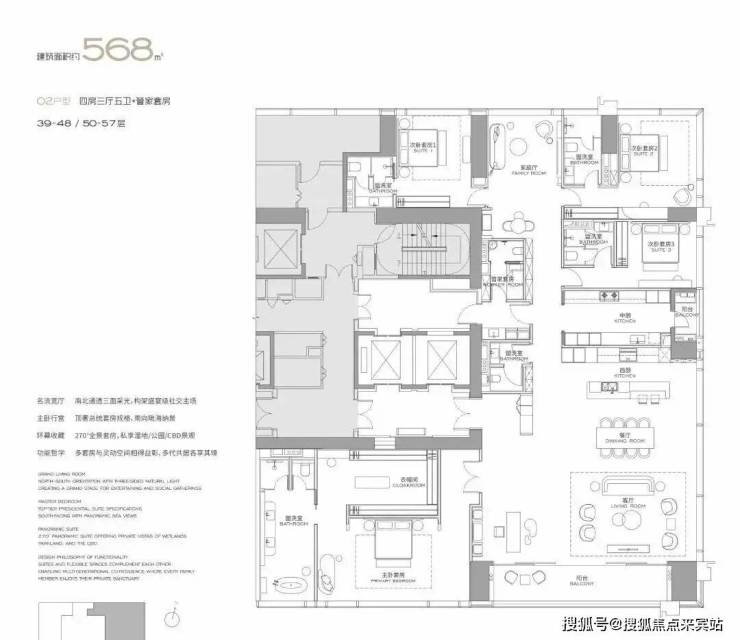 主力户型:303㎡、327㎡、404㎡、568㎡等大平层,最大户型达1032㎡