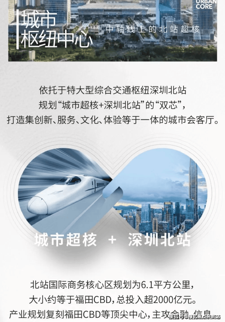 深圳北站总部基地作为七大总部基地之一,2000 亿巨资投入,以高标准缔造深圳中芯,形成多元复合的国际会客厅,在北站总部基地升级后,以城市超核为中心,打造全新体验的城市新封面,成就湾区未来枢纽超级地标。