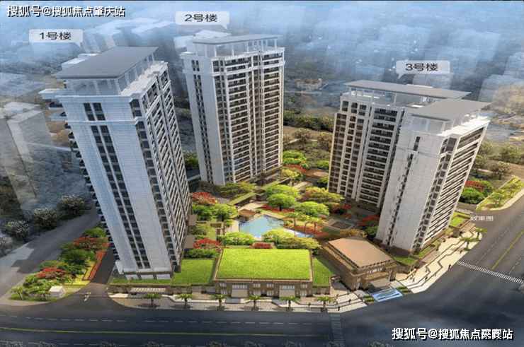3 栋板式高层 + 临街商业,社区规划中央景观花园与泳池,70 年产权精工恒产