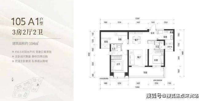 105㎡有两个户型,分别为A1双龙抱珠以及B户型传统竖厅