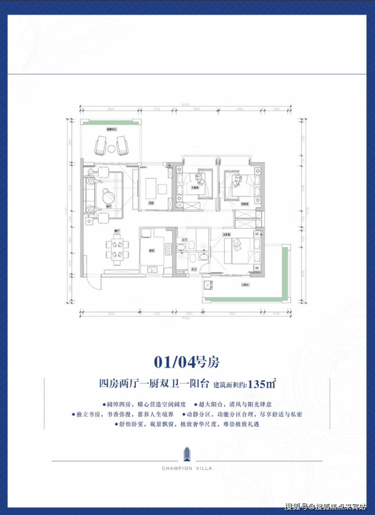 户型设计:户型方正,正南正北的朝向,全通式大飘窗设计,明厨明卫,超大景观露台设计让业主居住更加舒适。