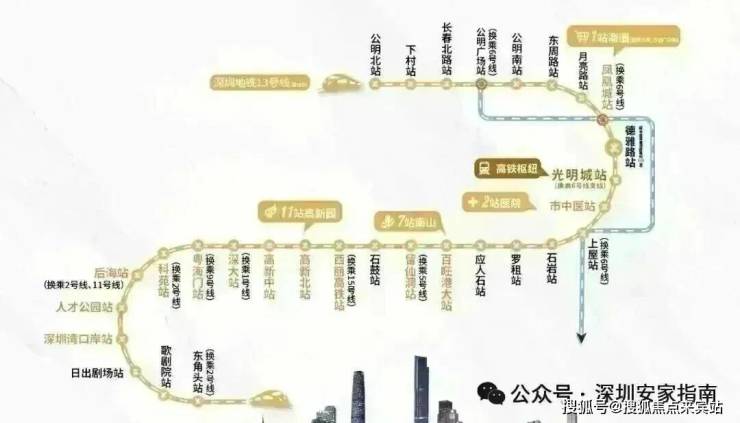 交通配套:观玥名邸家门口就是13号地铁线“德雅路站”,以前的同观路站已经改名,最高时速100公里,预计2025年开通运营,1站可到光明城站,换乘6号线/光明城高铁站,3站可到石岩,7站到西丽,8站到留仙洞总部基地,11站到南山高新园。
