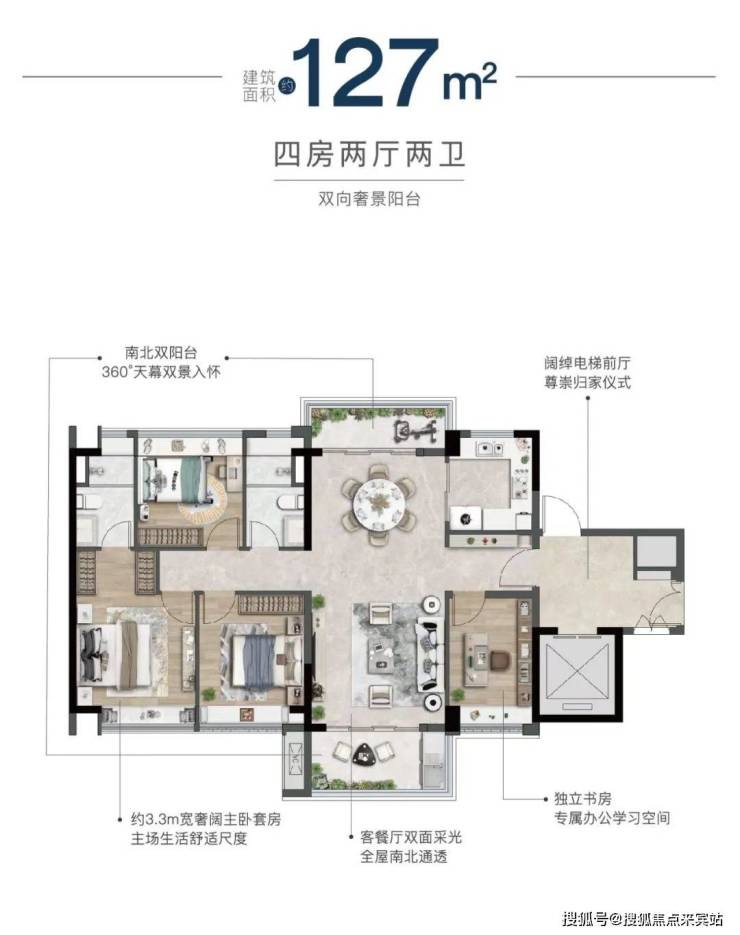 振业天成2.0容积率,领先广州94%的楼盘;精心打造建面约105-165㎡天赋型低密藏品,南北通透,私密单边。