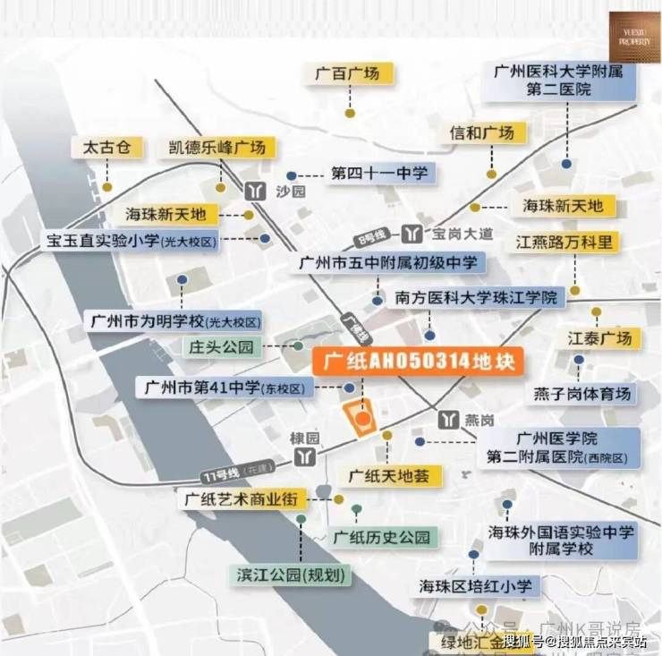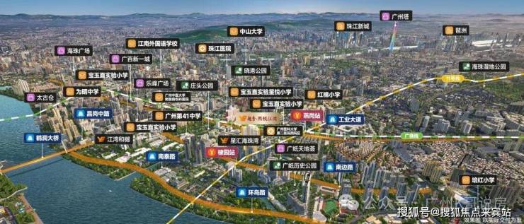 项目自身没有配建学校,但周边名校环伺,3km直线范围内包含广州市五中附属初级中学(省级)、广州市第41中学(省级)、宝玉直实验小学(光大校区)、江南外国语学校、工业大道中小学、红棉小学、海富小学、南燕小学、培红小学等9所学校环伺,拥有完善的区域教育体系。