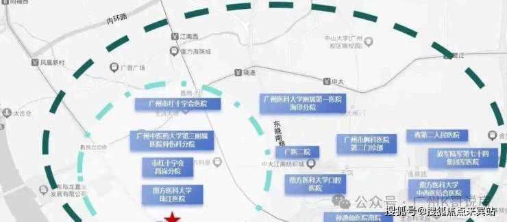 步行约850m可达珠江医院(全国首批三甲)、约250m广医二院(西院区)、南石头社区服务中心;周边约3km内广州红十字会医院、妇幼保健院(二甲)、省口腔医院(三甲)、中山孙逸仙医院南院、广中医骨伤科医院等医疗体系,24H为健康护航。