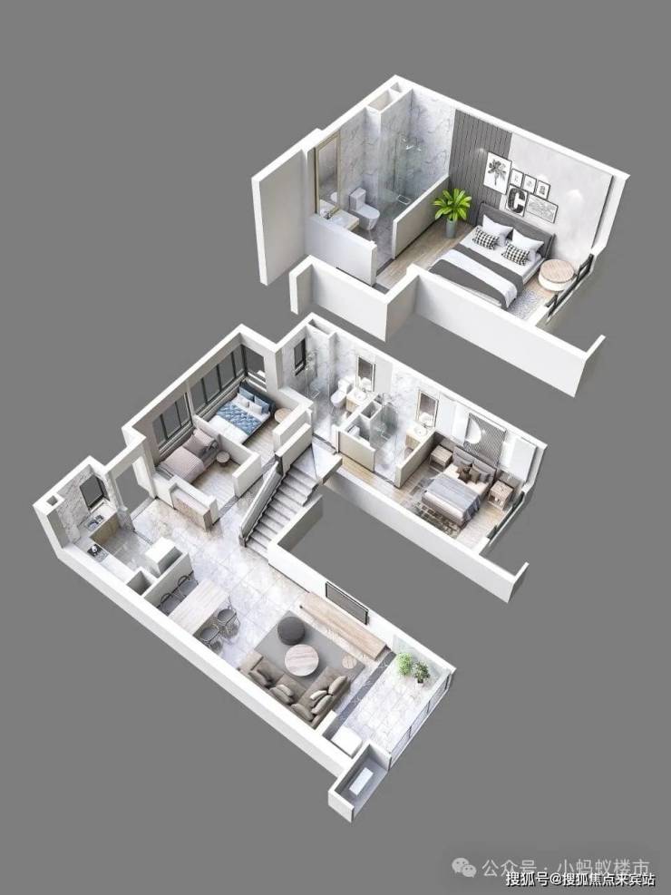 5.8米层高复式:创新“咬合式”设计,上下层独立动静分区,一层价格享受两层空间;