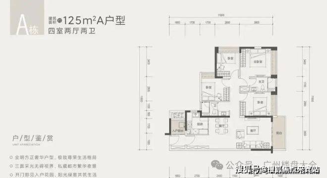 建面 125㎡四房:全北向设计,格局方正,适合预算有限的改善家庭,总价相对亲民,需注意北向中山大道噪音影响;