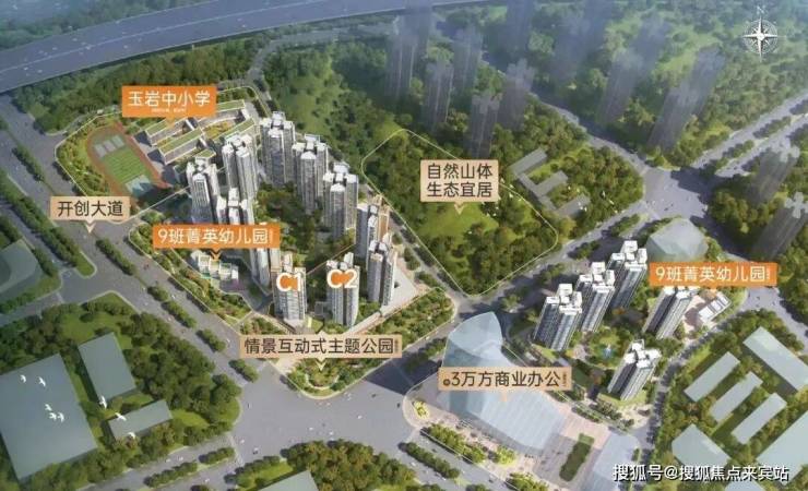 项目东侧是约3000亩自然山体,从阳台望出去,可以很清晰看到山景;西侧则是约1350亩创新公园,孩子游玩、长辈散步,都有好去处。