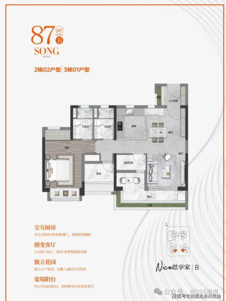 首推面积:2-3栋72㎡、84㎡、86㎡、87㎡