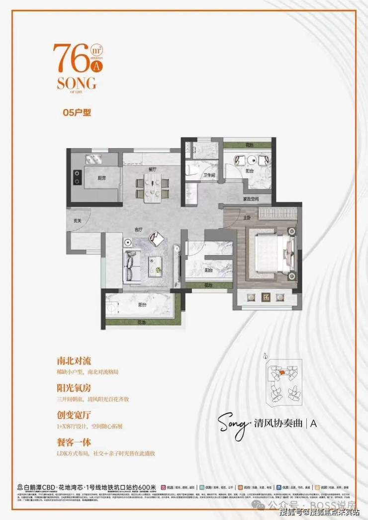 • 约3.8米宽厅,小户型享大尺寸横厅