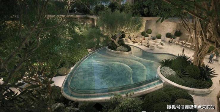 约5.5万㎡三层立体园林:以“森海·浮屿”为概念,打造峡谷、银滩、心形戏水池、800㎡中央水景等多重景观,移步换景,仿佛漫步于滨海度假胜地。