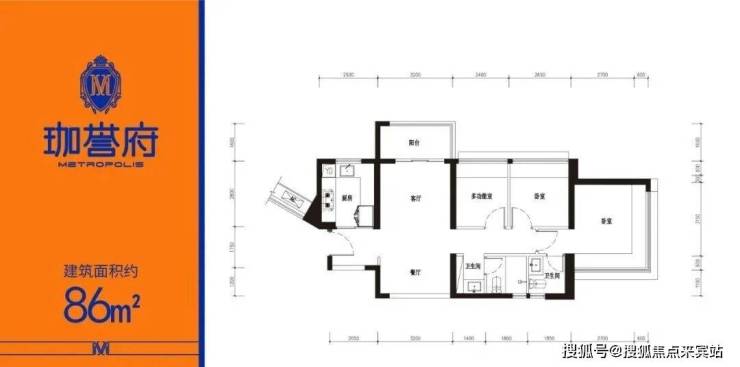 | 约86㎡(竖厅)三房两厅两卫(2区1-1-01/07)