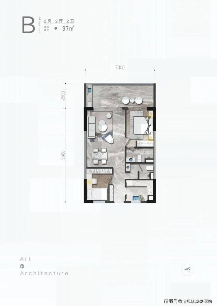 B户型/2房/2厅/2卫/97㎡