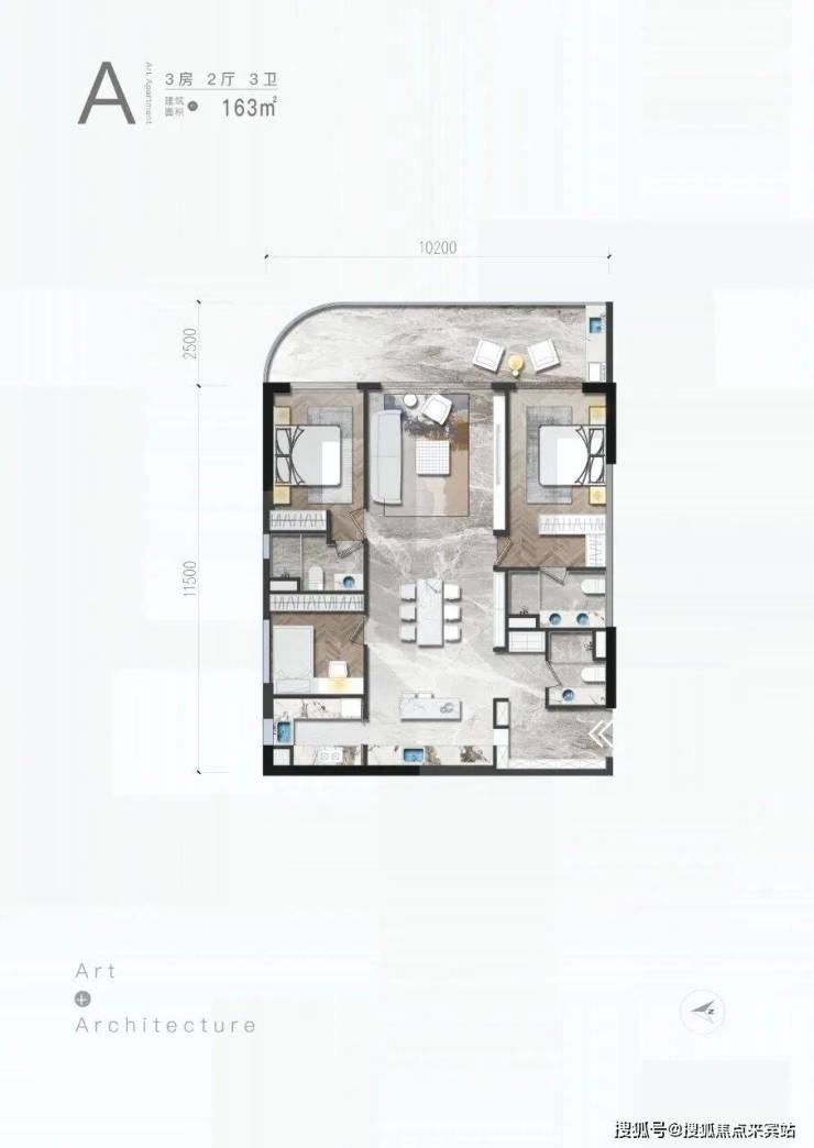 A户型/3房/2厅/3卫/163㎡