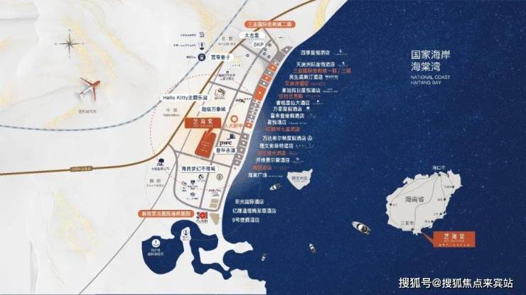 落址海南自由贸易港,三亚国际旅游消费中心,“国家海岸”海棠湾,湾区一线核心腹地。