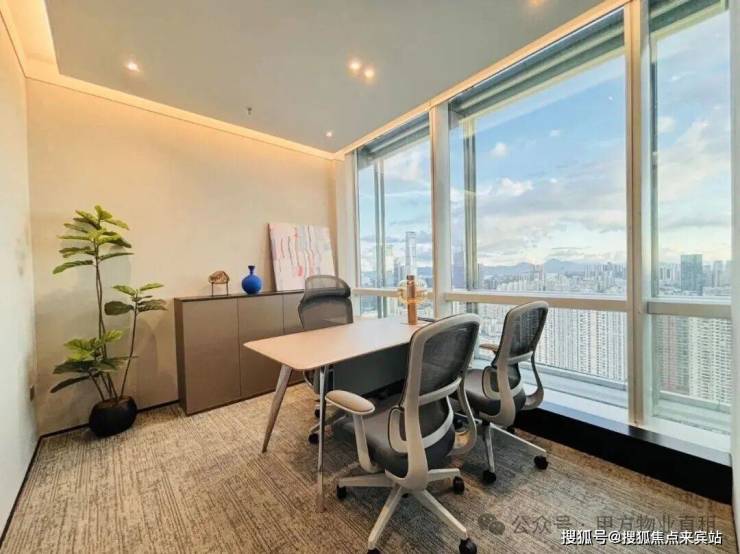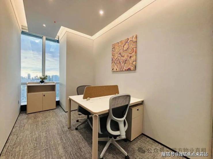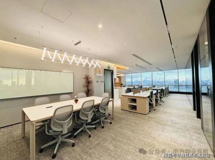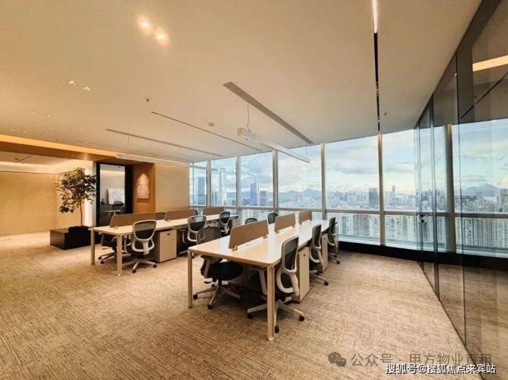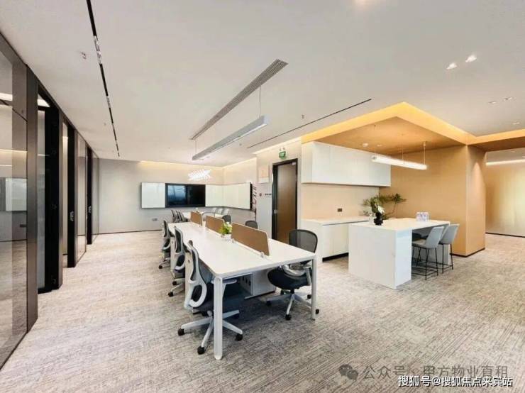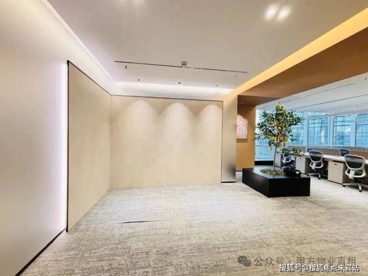 交付标准:包括铝扣天花板、灯盘、空调末端机、新风系统、全电动窗帘、网络地板。