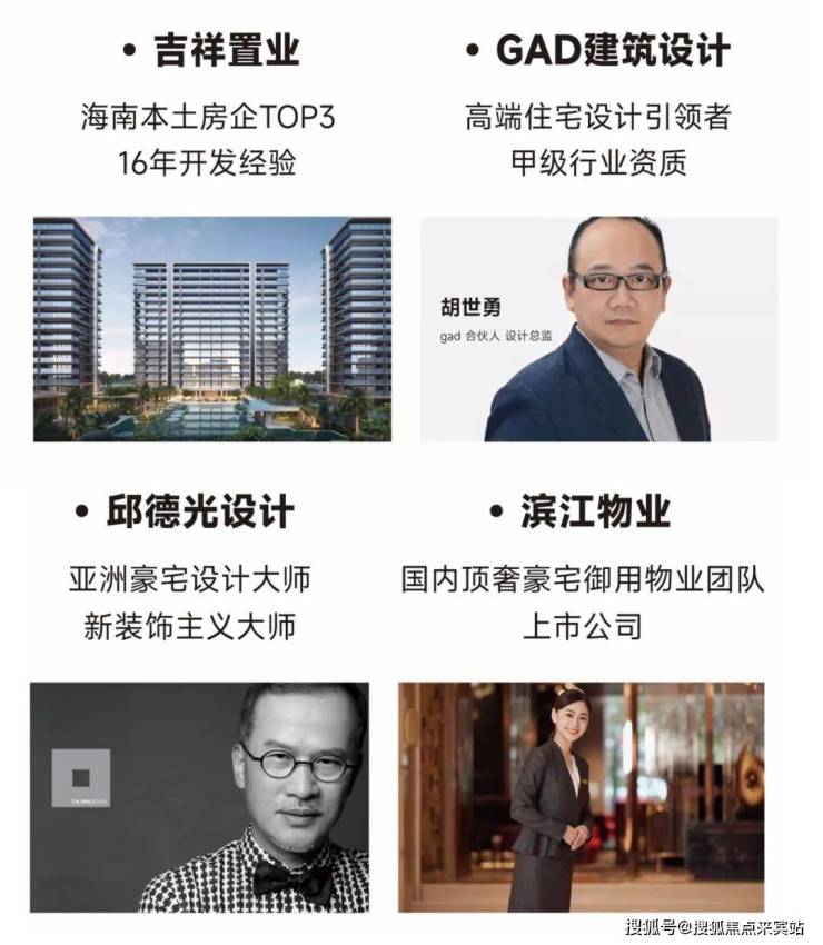 吉祥置业 x GAD建筑设计 x 邱德光设计 x 滨江物业。但凡珍品,往往出自名家之手。吉祥定向选择业内顶级合作伙伴,共同打造标杆——吉祥16号致献三亚湾。